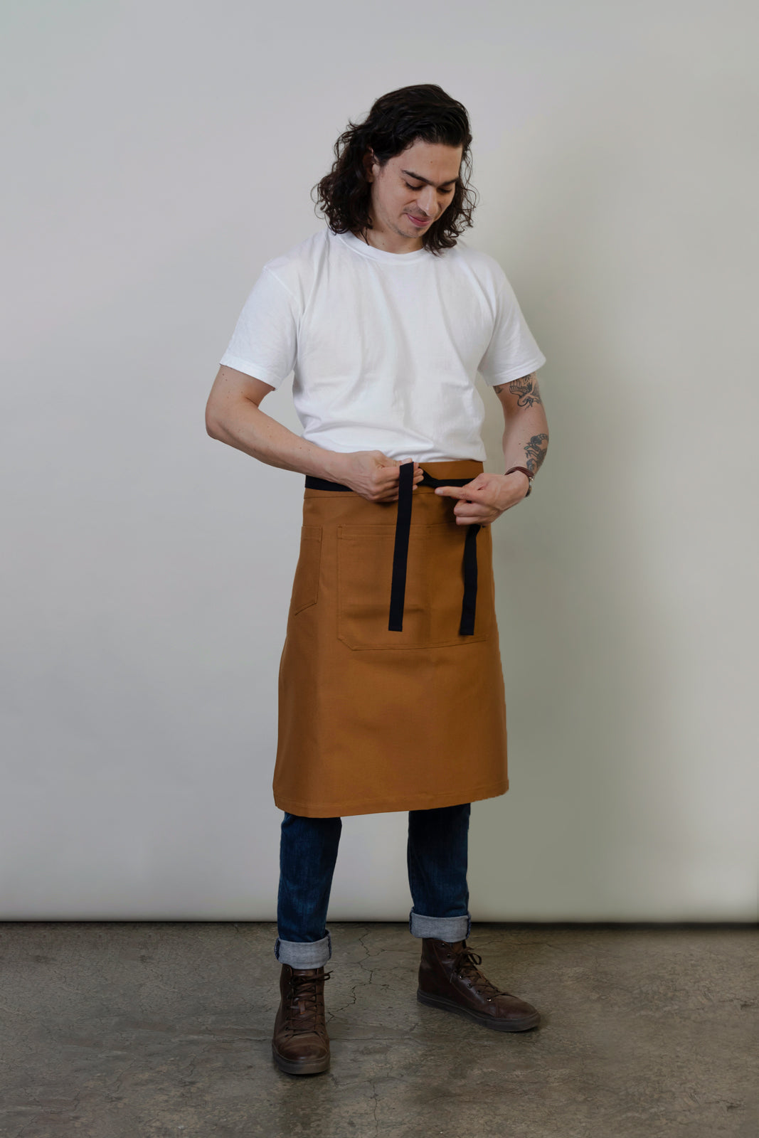 Nota: Te recomendamos lavar tu mandil como viene en las instrucciones de lavado, para que el material se suavice antes de tu primer uso.